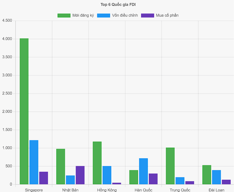 Sáu quốc gia này chiếm 84,3% tổng FDI.
