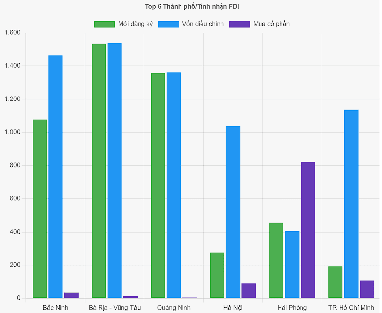 Các tỉnh này cùng nhau tiếp nhận 58,7% tổng FDI của Việt Nam.